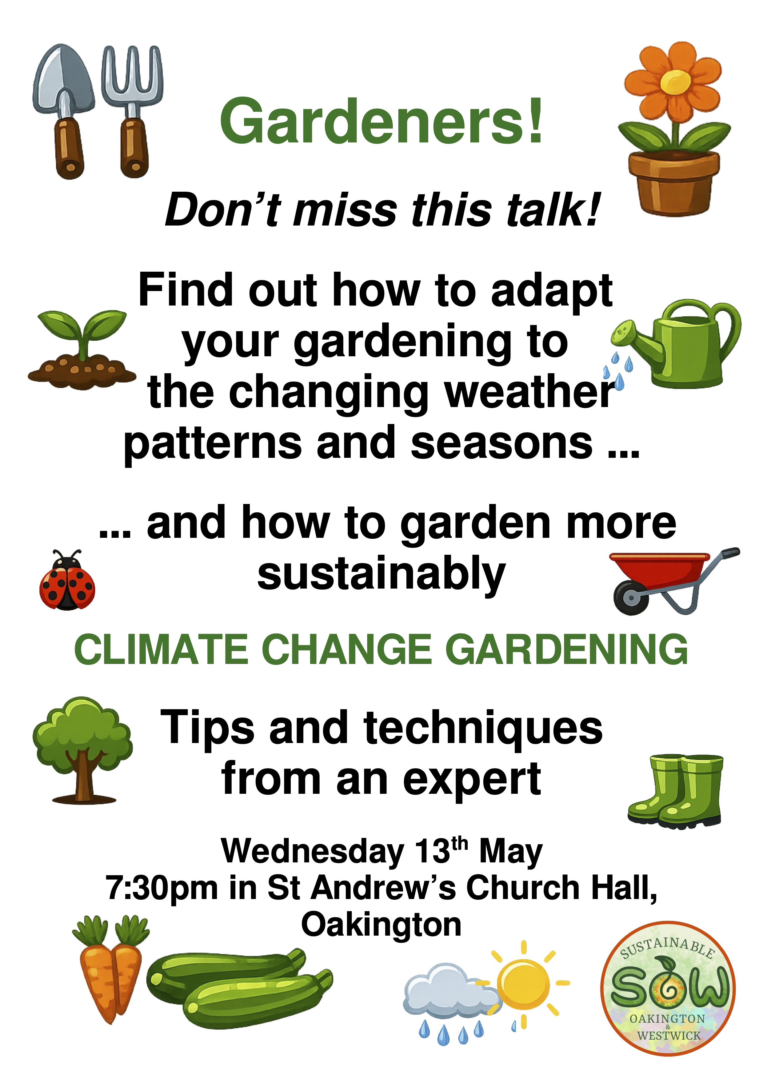 Our friends at Sustainable Oakington & Westwick are recommending this talk to all gardeners. See the poster for details.