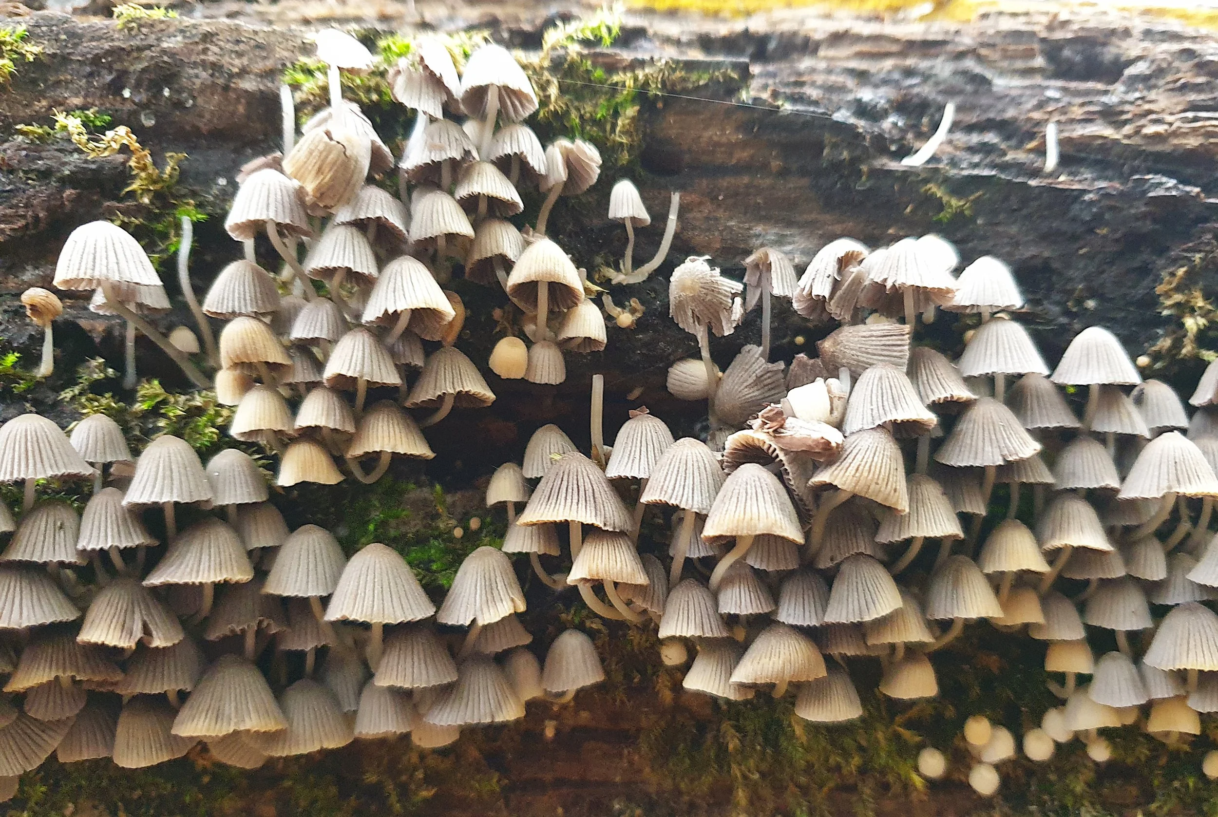 Here fungi are most evident on dead wood. To date, relatively few large bracket fungi have been recorded, though Beefsteak fungus (Fistulina hepatica), Chicken-of-the-woods (Laetiporus sulphureus) and Artist's bracket (Ganoderma applanatum) have all been noted. At a smaller scale, Bonnets like Nitrous bonnet (Mycena leptocephali) and Clustered bonnet (Mycena inclinata) have occurred.