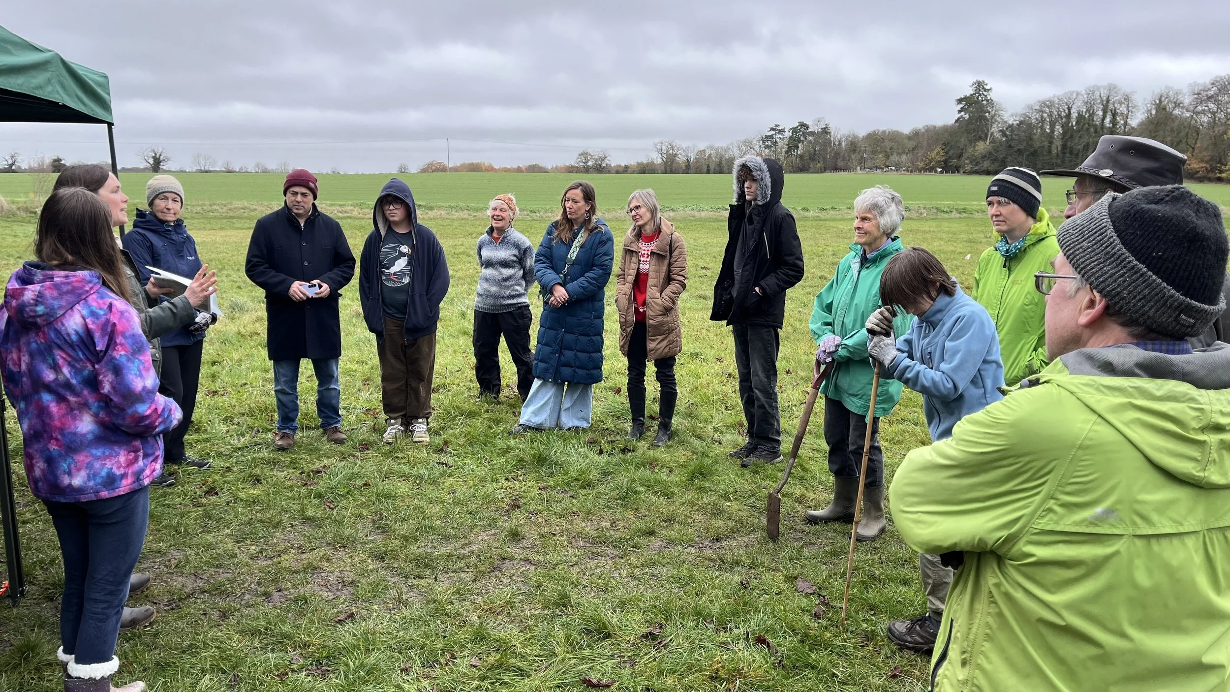 As with last year’s planting, we have thickened the hedge adding two new rows on the meadow side to the original single line of hedge plants. This should be good for all sorts of wildlife, whether small insects and other invertebrates, or birds and mammals that will feast on the autumnal berries. Photographs taken at the planting are shown below.